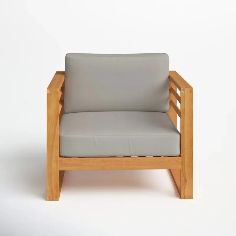 คุณสมบัติที่ดีที่สุดของชุดเก้าอี้ไม้กลางแจ้งนี้คือการออกแบบแบบแยกส่วน ซึ่งทำให้ผู้ใช้สามารถปรับเปลี่ยนชุดเก้าอี้ทั้งหมดตามความต้องการได้อย่างง่ายดาย ไม่ว่าจะสำหรับงานสังสรรค์เฉพาะหรือเพียงแค่เปลี่ยนบรรยากาศ การจัดเรียงใหม่ก็ทำได้รวดเร็วและง่ายดาย การออกแบบนี้ไม่เพียงแต่ตอบสนองความต้องการเฉพาะบุคคลเท่านั้น แต่ยังช่วยลดภาระทางการเงินในการซื้อเฟอร์นิเจอร์ใหม่บ่อยครั้งอีกด้วย เฟอร์นิเจอร์แต่ละชิ้นทำจากวัสดุที่ทนทานต่อสภาพอากาศที่คัดสรรมาอย่างดี ช่วยให้คงความทนทานและรูปลักษณ์ที่สวยงามในสภาพอากาศร้อนและเย็น เบาะรองนั่งของโซฟาหุ้มด้วยผ้าประสิทธิภาพสูงกันน้ำและทนต่อรังสียูวี ชั้นป้องกันนี้ป้องกันความเสียหายจากฝนและแสงแดดโดยตรงได้อย่างมีประสิทธิภาพ ช่วยยืดอายุการใช้งานของเฟอร์นิเจอร์ได้อย่างมาก
