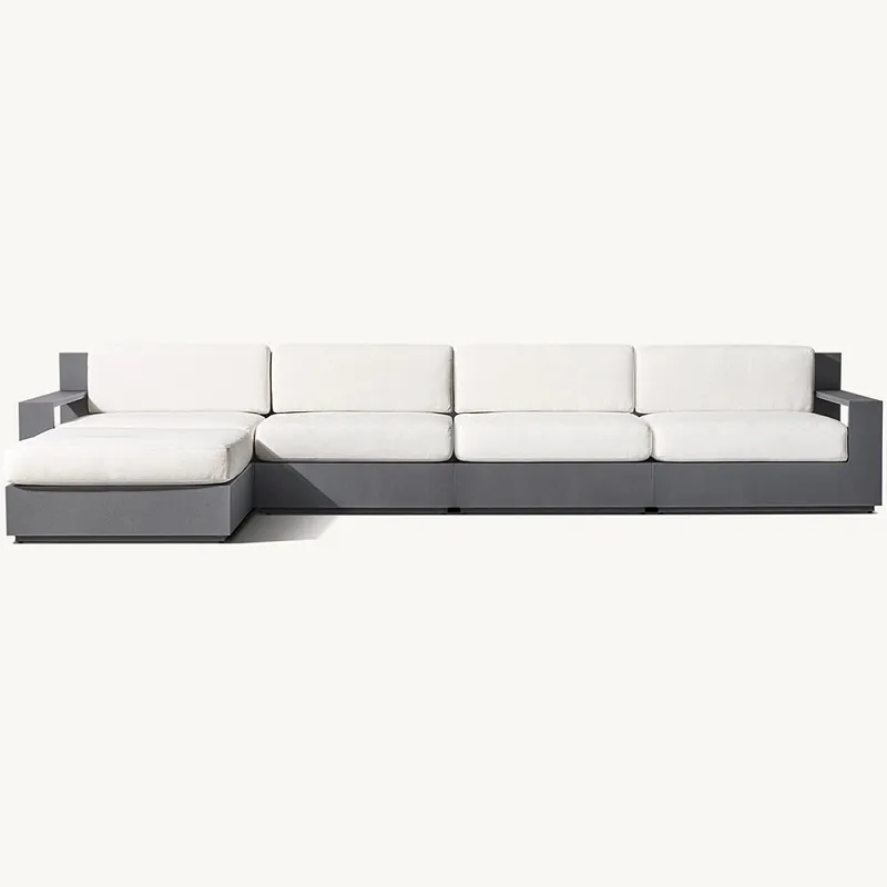 โซฟาตัวนี้ประกอบด้วยเบาะนั่งแบบนุ่มลึกและโครงแบบเรียบง่าย เพื่อให้เป็นที่นั่งกลางแจ้งที่น่าดึงดูดสายตาและสบายอย่างเหลือเชื่อ เบาะสีเทาเข้มทำจากผ้าคุณภาพสูงที่ทนทานต่อสภาพอากาศ ทนต่อการเปลี่ยนแปลงตามฤดูกาล แต่ยังคงรูปลักษณ์ที่หรูหรา เบาะแต่ละชิ้นบรรจุด้วยโฟมหนาที่ช่วยรองรับและให้ความสบาย เหมาะสำหรับนั่งเล่นหรือสังสรรค์เป็นเวลานาน