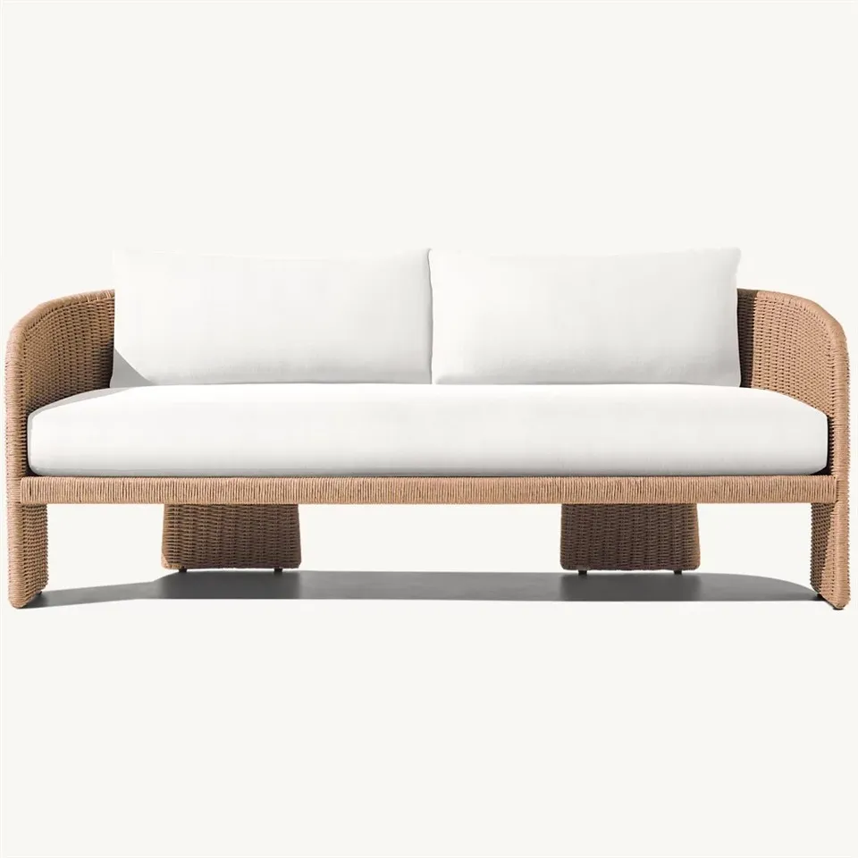 การออกแบบที่โอบล้อมทำให้รู้สึกปลอดภัยและอบอุ่น ราวกับถูกโอบกอดอย่างนุ่มนวล เบาะรองนั่งด้านบนนุ่มสบาย ให้สัมผัสราวกับก้อนเมฆ ชั้นล่างทำจากหวายทอด้วยมือเพื่อให้มีน้ำหนักเบาและระบายอากาศได้ดี ช่วยให้คุณรู้สึกเย็นสบายแม้ในฤดูร้อน กระบวนการทอนี้ไม่เพียงแต่เพิ่มความสวยงามให้กับโซฟาเท่านั้น แต่ยังให้การระบายอากาศและการระบายอากาศที่เป็นเอกลักษณ์อีกด้วย